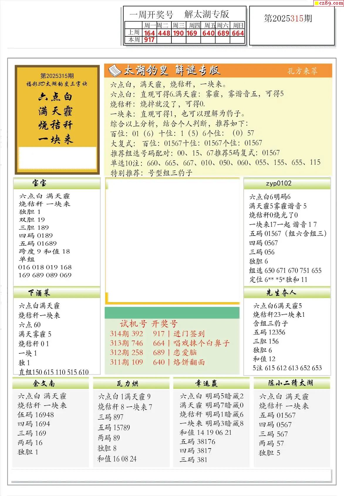 福彩3D2025315期 红尘入世锦鲤吐胆图