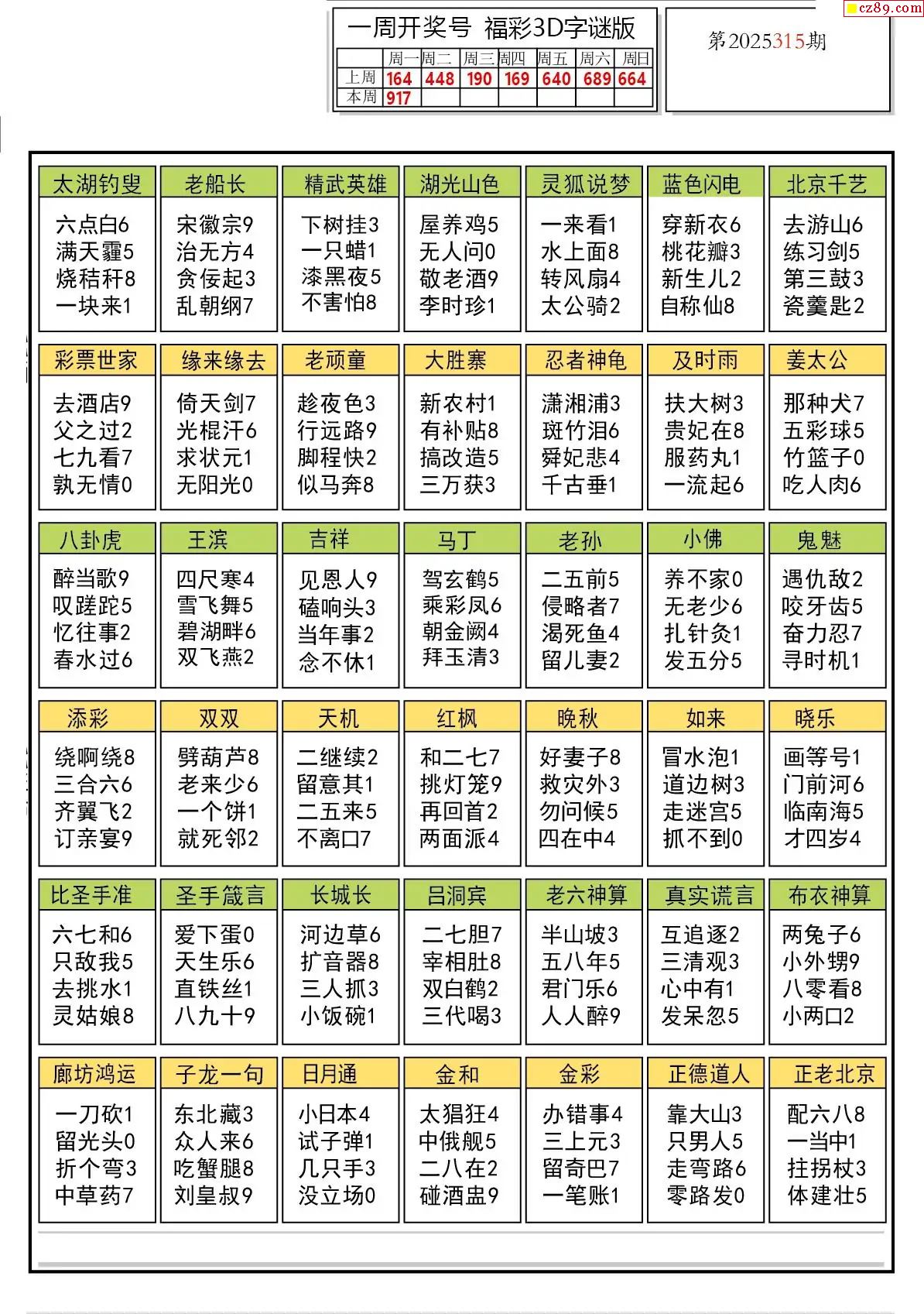 福彩3D2025315期 祁连牧哥百财纳福胆码图谜推荐