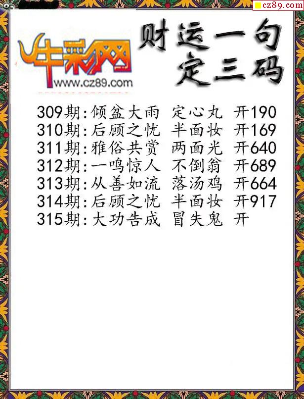 福彩3D2025315期 祁连牧哥百财纳福胆码图谜推荐