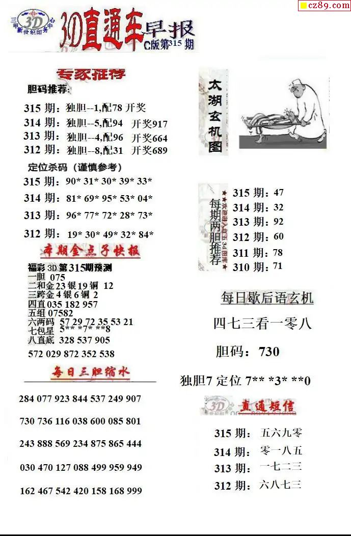 > 福彩3D2025315期直通车早报ABCD版