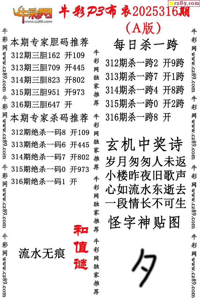 牛彩P3布衣25年316期AB版图谜(精华版)
