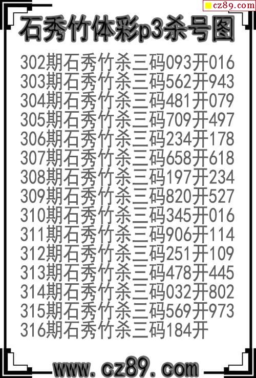 > 25年316期石秀竹体彩p3杀号图