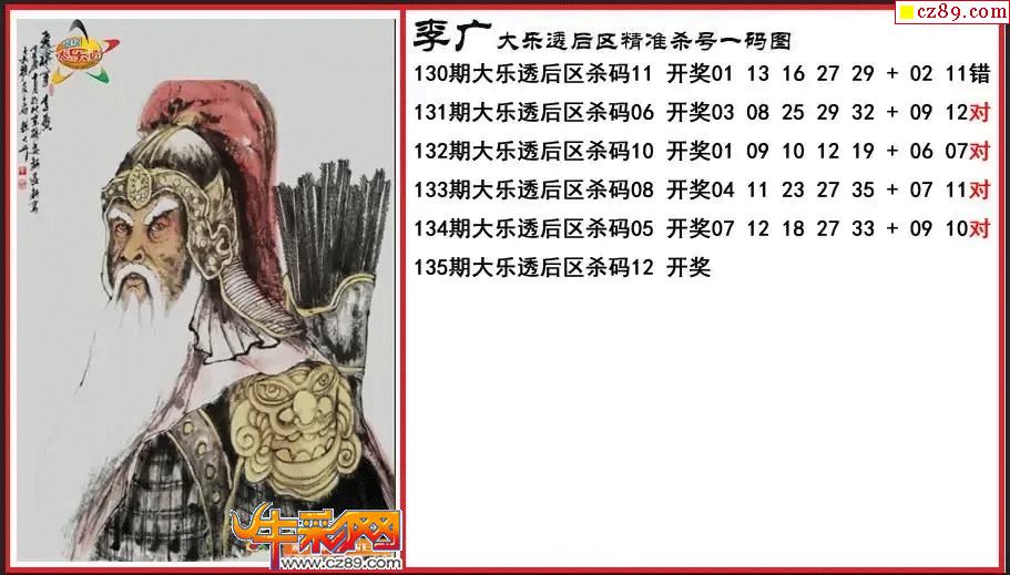 大乐透135期李广后区精准杀号一码图