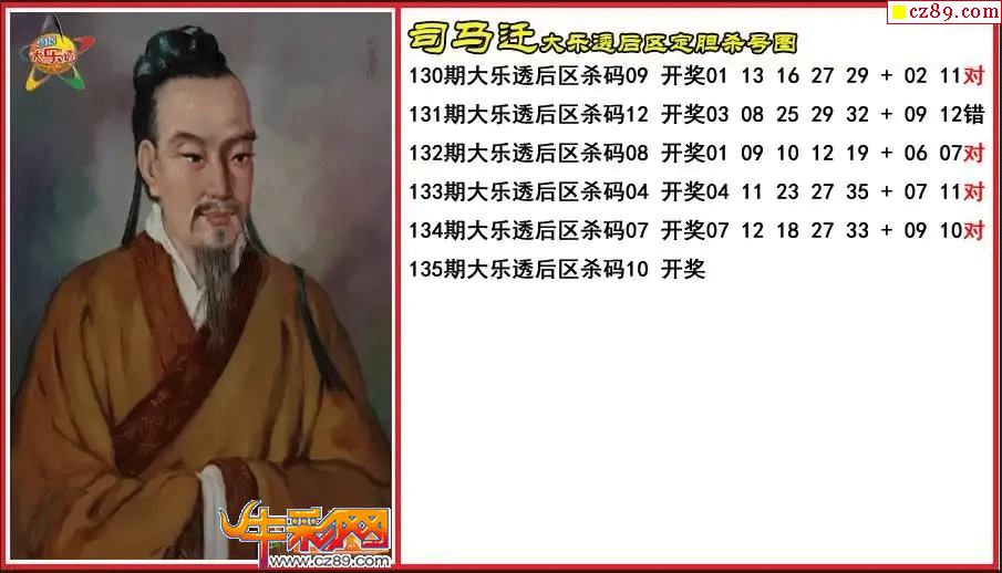 大乐透135期司马迁后区定胆杀号图